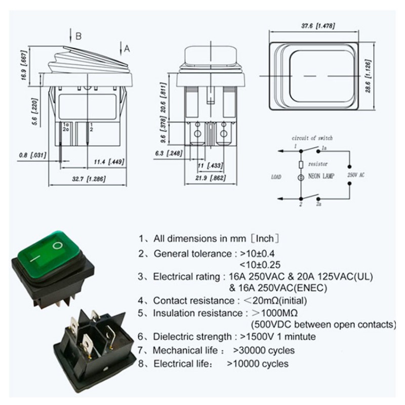 Detalles del interruptor basculante TongDa