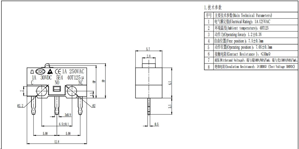 Utilizando un mecanismo de disparo rápido patentado, el tiempo de respuesta del disparador es ≤8 ms, lo que mejora el rendimiento en un 25 % en comparación con los microinterruptores tradicionales. El recorrido del gatillo se controla con precisión entre 0,3 y 1,0 mm, con un rango de fuerza operativa de 1,5 a 4 N. La respuesta de presión es clara y nítida, sin pegarse ni jugar libremente, lo que permite un control preciso de "toque ligero para conectar, soltar para romper", perfectamente adecuado para escenarios que requieren una alta sensibilidad del disparador. Los contactos están hechos de una aleación de plata y estaño de alta pureza y procesados con soldadura por puntos precisa, con una resistencia de contacto inicial de ≤30mΩ. La carga nominal admite 1 A/250 V CA y 3 A/125 V CA, lo que evita eficazmente que los contactos se calienten o quemen cuando pasa la corriente.