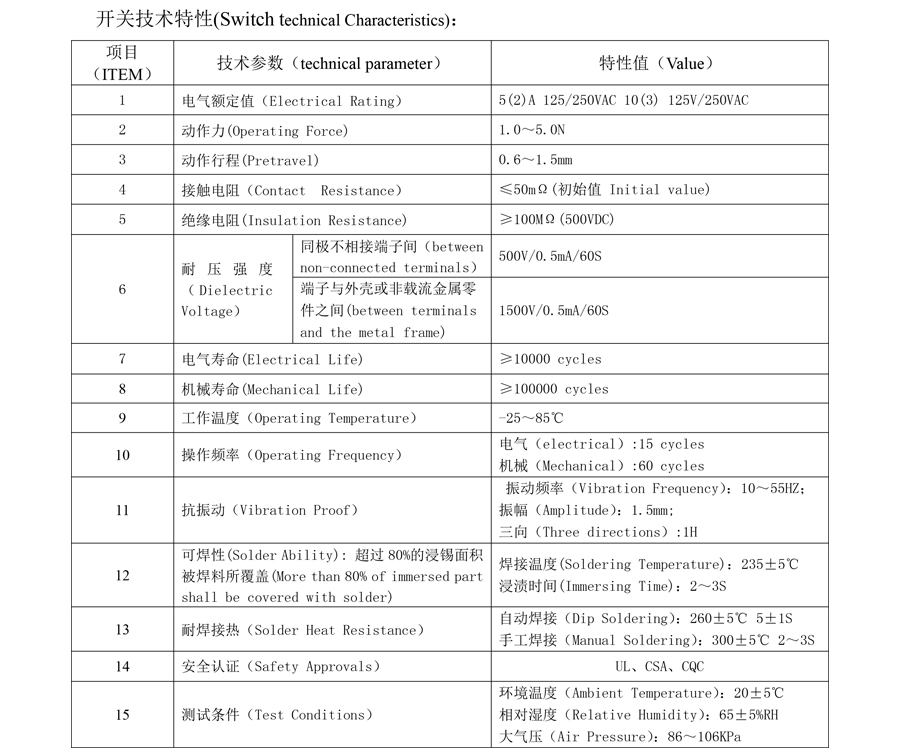 | 13 | Resistencia al calor de soldadura | Soldadura por inmersión: 260 ± 5 ℃ 5 ± 1 S Soldadura manual: 300 ± 5 ℃ 2 ~ 3 S |